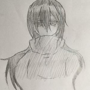 彼の髪は光にかざすと濃い紫色の透ける艶やかな黒髪。胸元まであるその髪を女の子のように首の横で二つに括っている。前髪で隠れた瞳は右が青で左が金のオッドアイ。しかし生気が無いというか…絶望してるというか、瞳は濁って美しさなど全く無い。_まぁ、そんな瞳は糸目のように細められ隠れてしまっているのだが。女のような顔立ちで、肌はモチモチとしている。__そんな女っぽい彼の服装は白い萌え袖のだぼだぼYシャツに黒いネクタイ。白い軍服を着ており、ズボンの裾は茶色のロングブーツのなかに入っている。右腕には半壊している手鎖がぶら下がり行動時には若干邪魔なようだ。いつも「ブラックデビル」と言う銘柄のバニラやチョコフレーバーの甘い煙草をくわえている。__何処と無く異常な雰囲気が漂う彼は__
